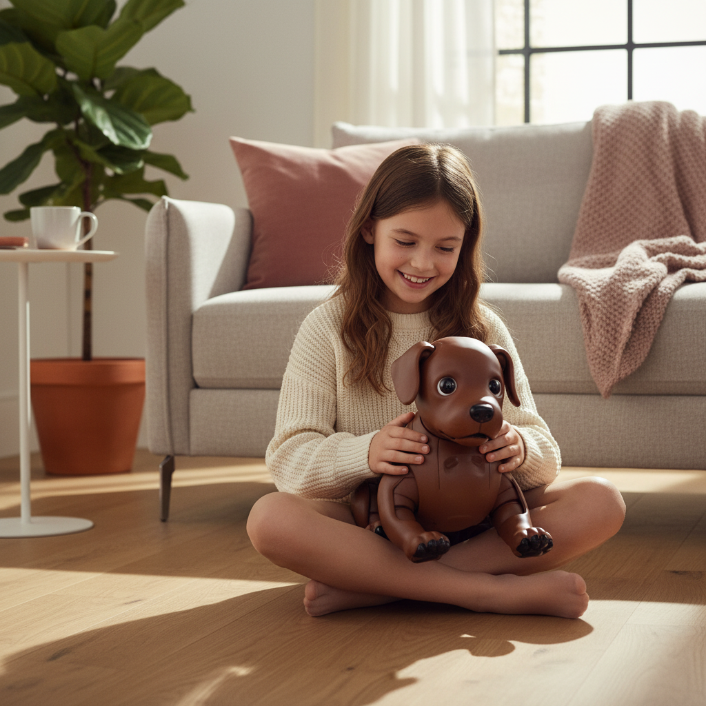 Watch our robot puppy interact, learn, and play in real home settings. See how it responds to voices, touch, and evolving routines.
